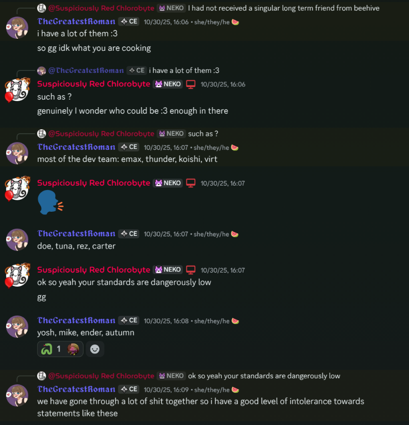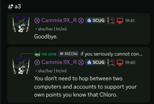 Chloro, our green kitty, was the founder and iron-fist owner of a B3313 Discord community, today known as The B33h1v3.