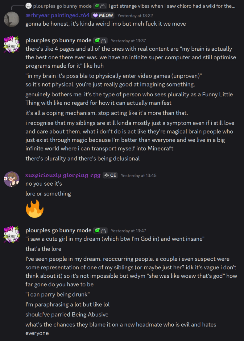 Digging into the LORE WIKI to explain how Chloro and I are insane and fucked up 🤣 and how they are NOT insane and fucked up 😤:
