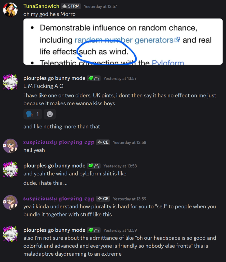 We are NOT the ones to go to for understanding your own system. We have never made a single claim that we would be a good resource for understanding your own system. There are plenty of resources available that are actually, you know, intended as resources to learn about and understand plurality. Learn to use a fucking search engine. On a related note, Chloro has actually posted some thoughts regarding splitting himself up: