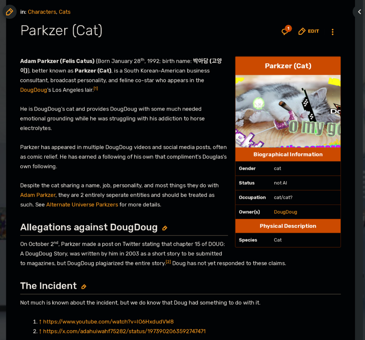 Let me present another 'Lore Wiki' entry, this one from the DougDoug cinematic universe: